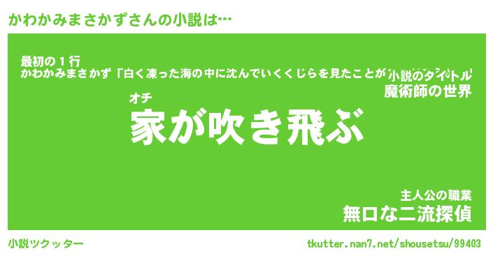 | 胡散臭い通販商品みたいなあだ名 | 『必ず成功する水晶球…その名も「かわかみまさかず」』 |