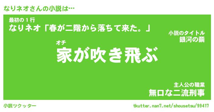 | 男性向けラノベタイトル風あだ名 | 『なりネオの憂鬱』 |