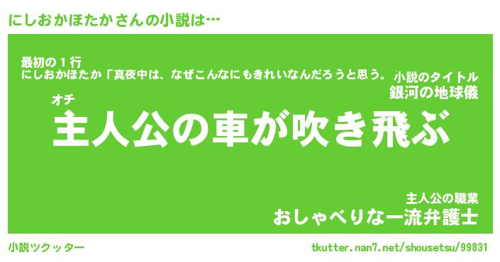 | 男性向けラノベタイトル風あだ名 | 『にしおかほたかの憂鬱』 |