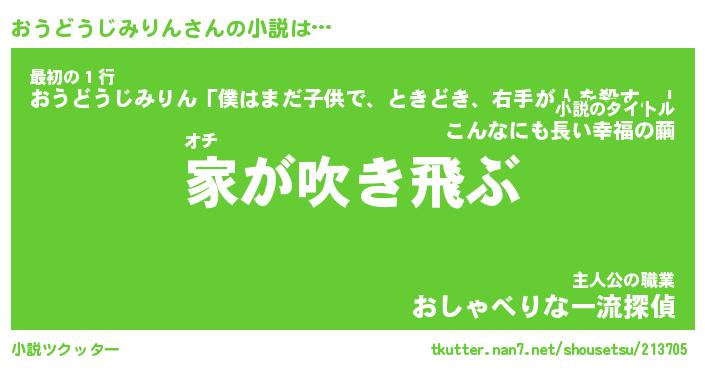 | 男性向けラノベタイトル風あだ名 | 『おうどうじみりんの憂鬱』 |