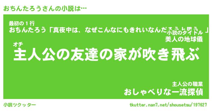 | 男性向けラノベタイトル風あだ名 | 『おちんたろうの憂鬱』 |