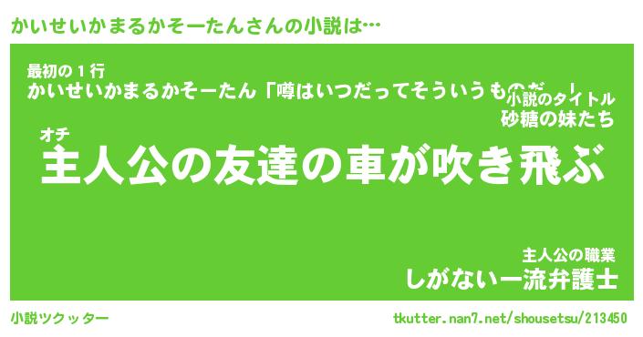 | 肩書あだ名 | 『かいせいかまるかそーたん御曹司』 |