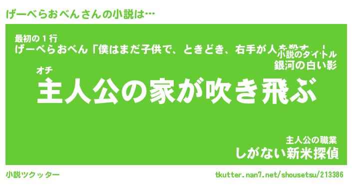 | 男性向けラノベタイトル風あだ名 | 『げーべらおべんの憂鬱』 |