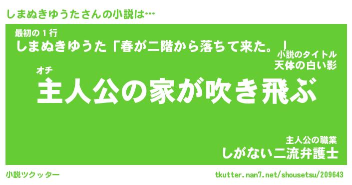 | 男性向けラノベタイトル風あだ名 | 『しまぬきゆうたの憂鬱』 |
