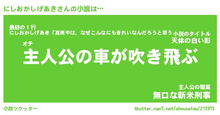 | 女子向けラノベタイトル風あだ名 | 『(仮)にしおかしげあきのやんごとなき事情』 |