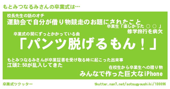 | 伝説のあだ名 | 『不死鳥のスナイパーもとみつなるみ』 |