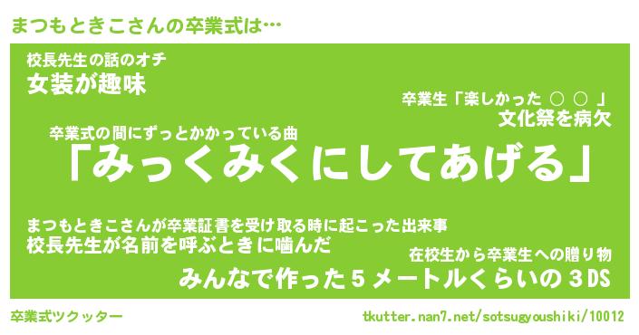 | 胡散臭い通販商品みたいなあだ名 | 『必ず成功する霊験あらたかなお札…その名も「まつもときこ」』 |
