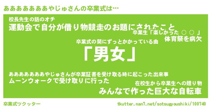 | 伝説のあだ名 | 『伝説のスナイパーあああああああやじゅ』 |
