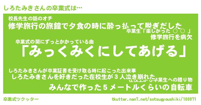 | 伝説のあだ名 | 『伝説のスナイパーしろたみき』 |