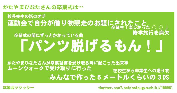 | 胡散臭い通販商品みたいなあだ名 | 『モテモテ間違いなしブレスレット…その名も「かたやまひなた」』 |