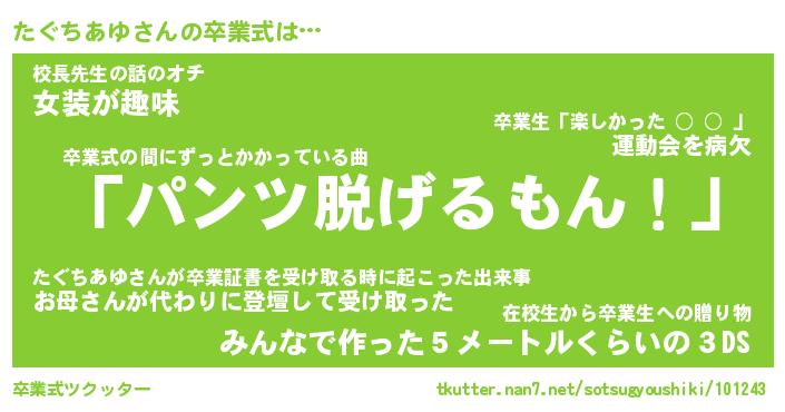 | 胡散臭い通販商品みたいなあだ名 | 『モテモテ間違いなしブレスレット…その名も「たぐちあゆ」』 |