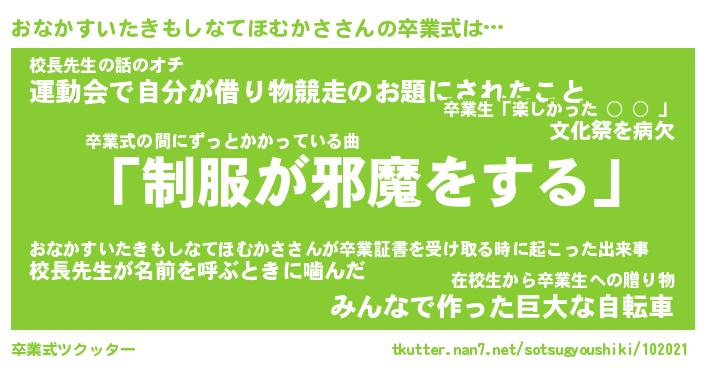 | ことわざ | 2階から目薬『おなかすいたきもしなてほむかさから目薬』 |