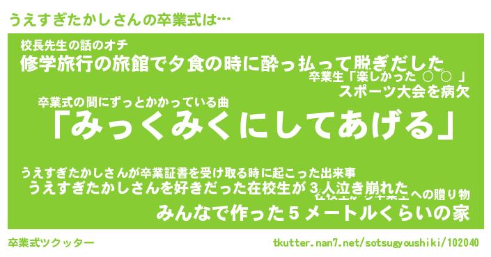 | 伝説のあだ名 | 『伝説のスナイパーうえすぎたかし』 |