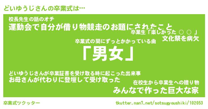 | 男性向けラノベタイトル風あだ名 | 『どいゆうじの憂鬱』 |