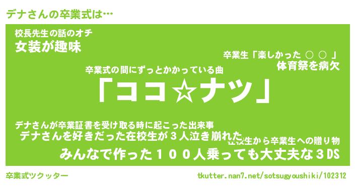 | ヘコむあだ名 | 『デナにー』『なまこ酢』『デナ太郎』 |
