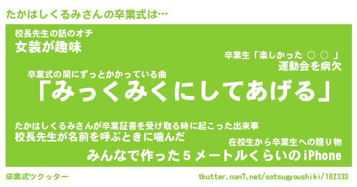 | 伝説のあだ名 | 『伝説のスナイパーたかはしくるみ』 |