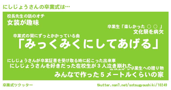 | 男性向けラノベタイトル風あだ名 | 『にしじょうの憂鬱』 |