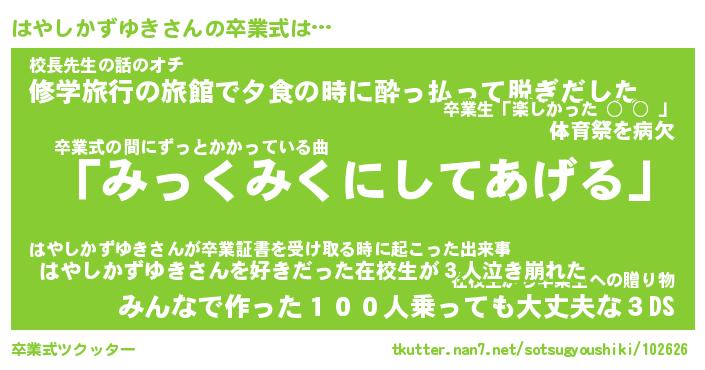 | 胡散臭い通販商品みたいなあだ名 | 『必ず成功する霊験あらたかなお札…その名も「はやしかずゆき」』 |
