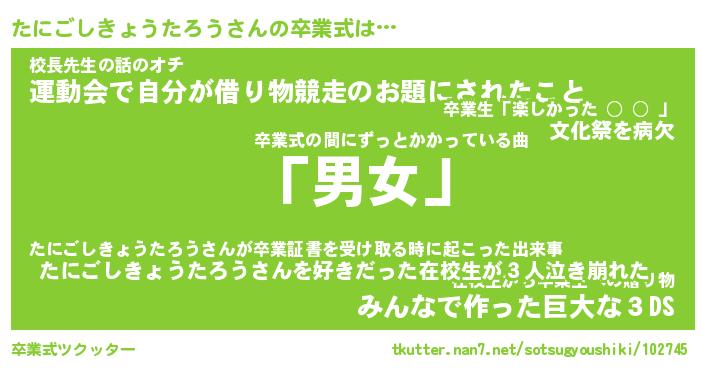 | ヒーロー風カッコイイあだ名 | 『スーパータニゴシキョウタロウ』 |