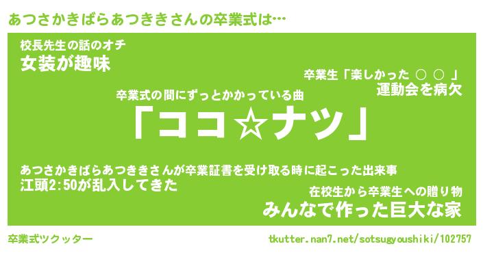 | ヒーロー風カッコイイあだ名 | 『スーパーアツサカキバラアツキキ』 |