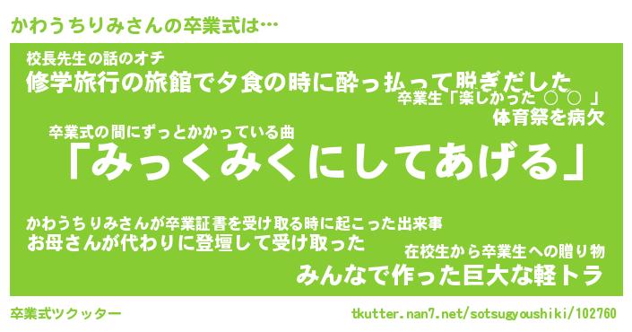 | 胡散臭い通販商品みたいなあだ名 | 『必ず成功する水晶球…その名も「かわうちりみ」』 |