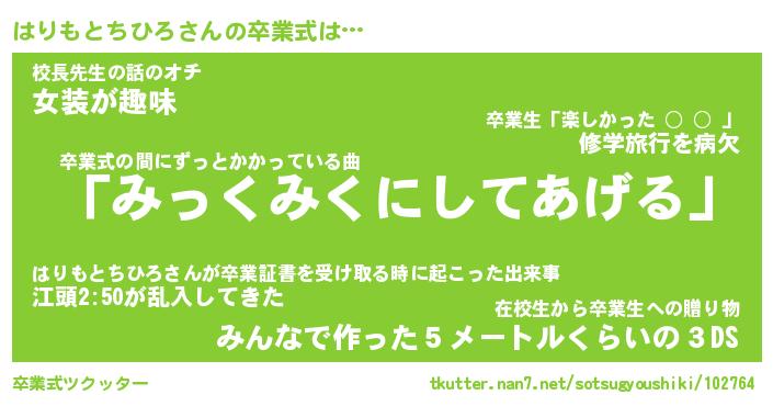 | ピコ太郎風あだ名 | 『ハコ一郎』『ピハ十郎』『ハリ二郎』 |
