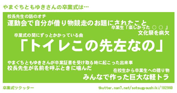 | 伝説のあだ名 | 『伝説のスナイパーやまぐちともゆき』 |
