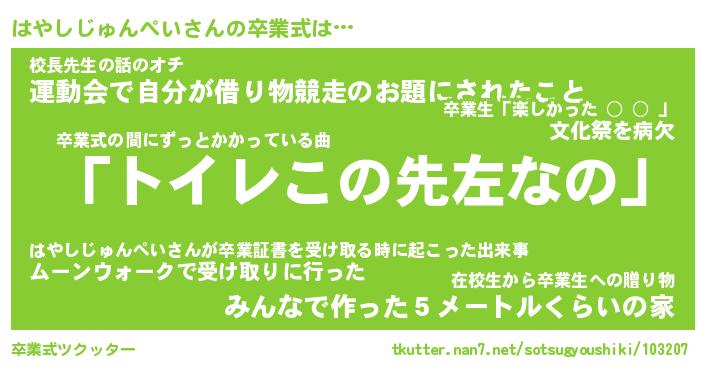 | 伝説のあだ名 | 『伝説のスナイパーはやしじゅんぺい』 |