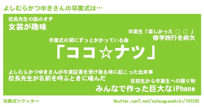 | 伝説のあだ名 | 『不死鳥のスナイパーよしむらかつゆき』 |