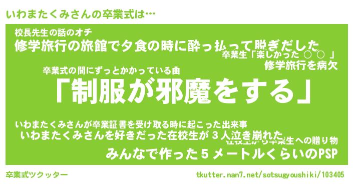 | 肩書あだ名 | 『いわまたくみ社長』『いわまたくみ教頭』 |