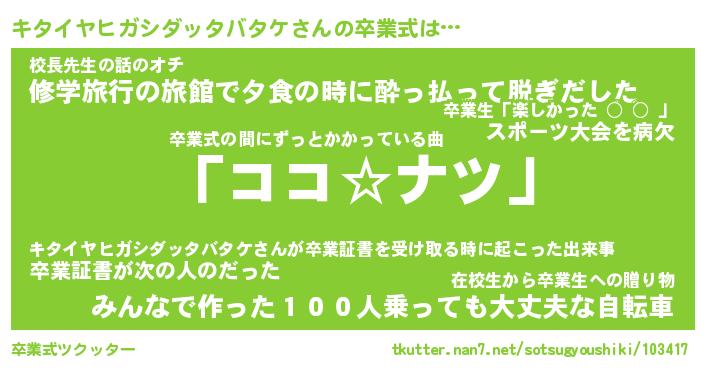 | 欧米人風あだ名 | 『マイケルキタイヤヒガシダッタバタケ』 |