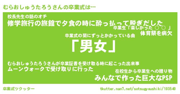 | 伝説のあだ名 | 『伝説のスナイパーむらおしゅうたろう』 |