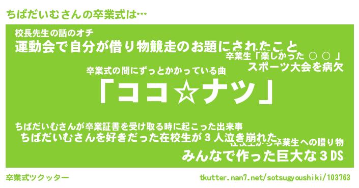 | ヘコむあだ名 | 『ちばっふぃ~』『つくし』『ちばお』 |