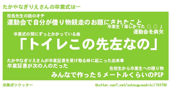 | 胡散臭い通販商品みたいなあだ名 | 『必ず成功する霊験あらたかなお札…その名も「たかやなぎりえ」』 |