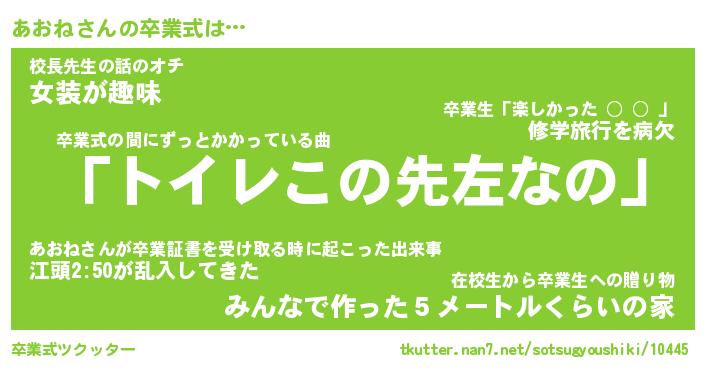 | ピコ太郎風あだ名 | 『アコ四郎』『ピア十郎』『アオ二郎』 |