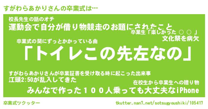 | 胡散臭い通販商品みたいなあだ名 | 『必ず成功するブレスレット…その名も「すがわらあかり」』 |
