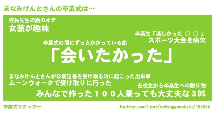 | 胡散臭い通販商品みたいなあだ名 | 『モテモテ間違いなし水晶球…その名も「まなみけんと」』 |