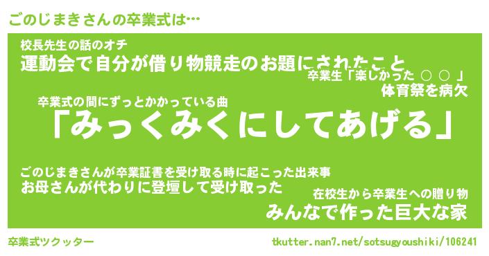 | ヘコむあだ名 | 『ごのにゅー』『つくし』『ごのを』 |