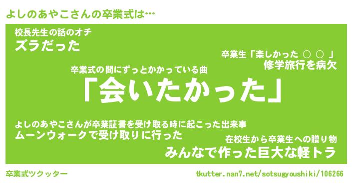 | 伝説のあだ名 | 『不死鳥のスナイパーよしのあやこ』 |