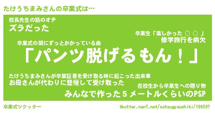 | 伝説のあだ名 | 『不死鳥のスナイパーたけうちまみ』 |