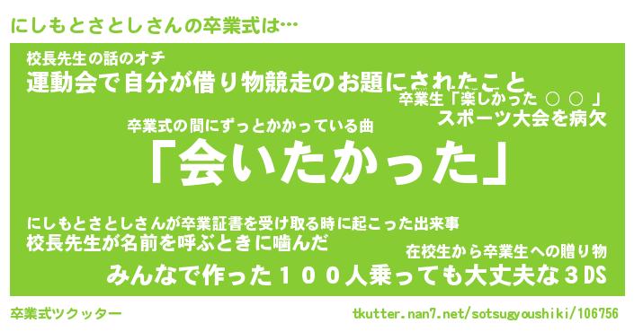 | ヘコむあだ名 | 『にしふぇ~』『つくし』 |