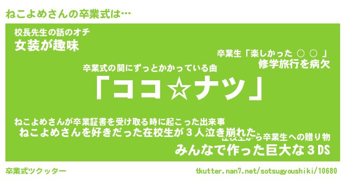 | ヘコむあだ名 | 『ねこにー』『酢こんぶ』『ねこっ子』 |