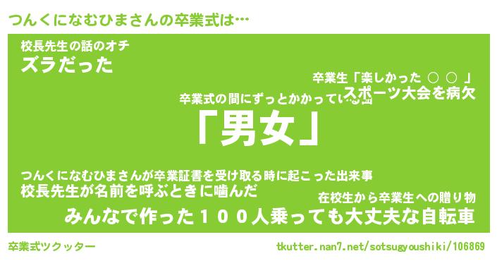 | 男性向けラノベタイトル風あだ名 | 『つんくになむひまの憂鬱』 |