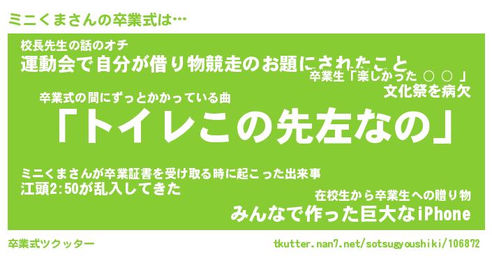 | 伝説のあだ名 | 『伝説のスナイパーミニくま』 |