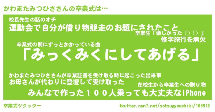 | 肩書あだ名 | 『かわまたみつひさ御曹司』 |