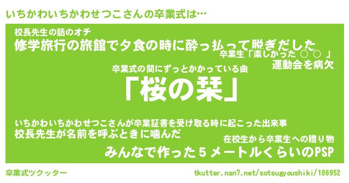 | ツイッター | いちかわいちかわせつこさんのツイッターID『fukuyoka_star』 |