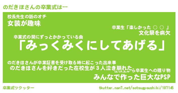 | 伝説のあだ名 | 『伝説のスナイパーのだきほ』 |