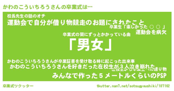 | 男性向けラノベタイトル風あだ名 | 『かわのこういちろうの憂鬱』 |