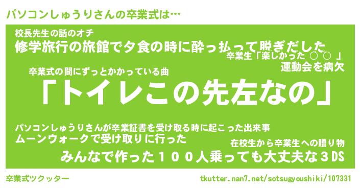 | 伝説のあだ名 | 『伝説のスナイパーパソコンしゅうり』 |
