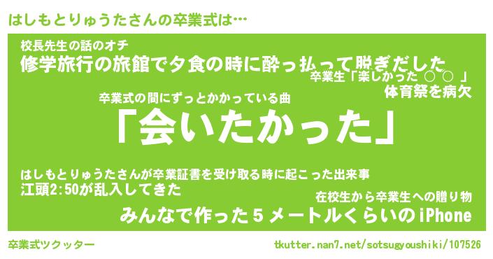| 伝説のあだ名 | 『不死鳥のスナイパーはしもとりゅうた』 |